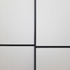 Дизайнеры использовали для оформления дверей два цвета — черный и белый. Большое дверное полотно для шкафа-купе окрашено в черный матовый цвет. Его разделяют на несколько сегментов тонкие черные вставки. Такие двери придутся по вкусу даже самому привередливому критику.