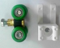 При сборке перегородки устанавливаются кронштейны PU09. Когда перегородка уже собрана, ее навешивают на четырехгранную головку винта ролика PU10. В таком положении конструкцию фиксируют гайкой (1), затягивая ее к поверхности кронштейна. Далее регулировка выполняется путем вращения втулки (3). После регулировки выполняется фиксация гайкой (2), при этом удерживается втулка (3), как это показано на рисунке.