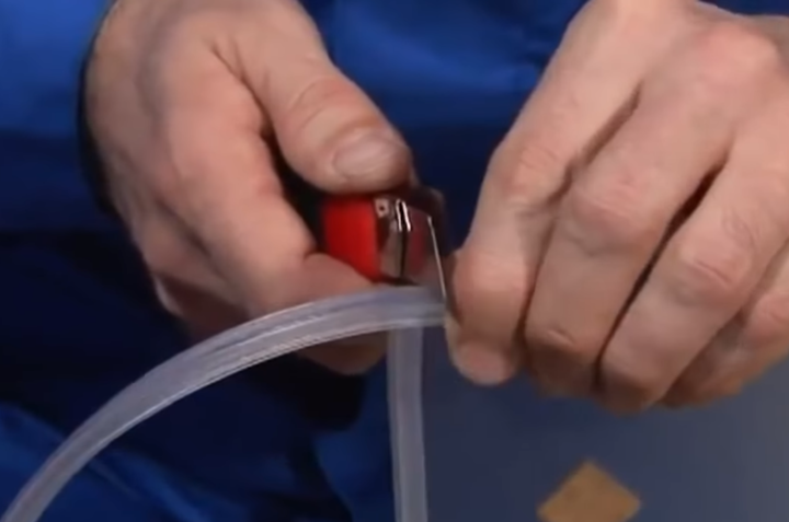 Используя молоток, поворачиваем корпус ролика относительно центрального отверстия. Аккуратно постукивая инструментом, убираем зазор. Вновь снимаем перегородку и для жесткой фиксации нижнего колесика затягиваем саморезы до упора. Устанавливаем конструкцию на место.
