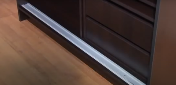 С одной из сторон при помощи киянки монтируем на наполнение нижний и верхний профиль, что по горизонтали (KR07 и KR08). Затем устанавливается ручка (KR 300N). В качестве наполнения применяют ЛДСП, МДФ, зеркало и прочие виды материалов. Их толщина должна составлять 4, 8 и 10 мм.