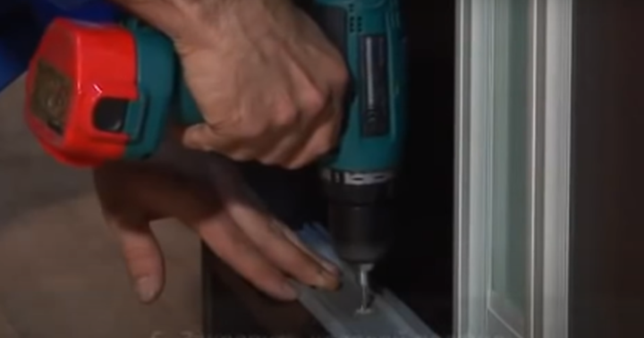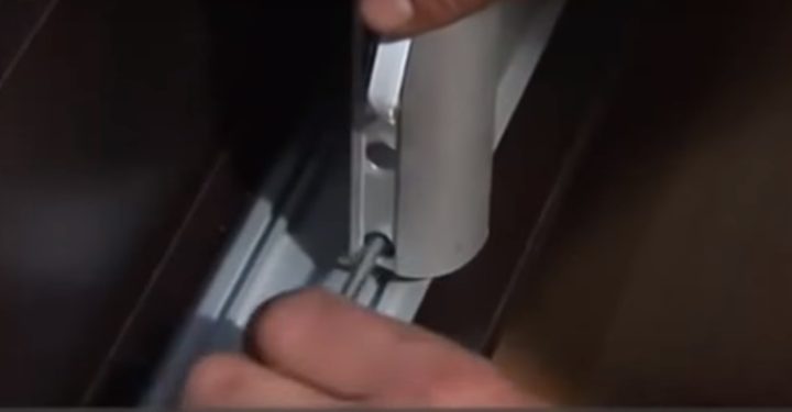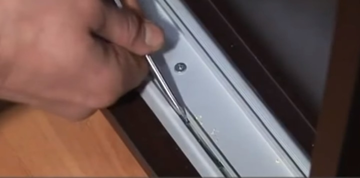 В верхней части крепим кронштейн в паз ручки саморезом, пока не зафиксируем полностью. Важно, чтобы паз под головку винта колесика на верхней полке кронштейна обращался к внутренней поверхности двери. С противоположной стороны действия аналогичны.