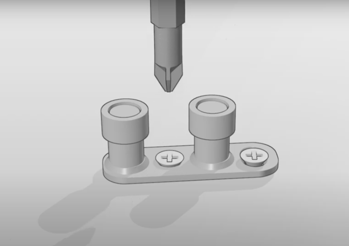 Пришло время настройки, теперь мы устраняем зазор между перегородкой и нижним роликом. Между этими элементами имеется люфт. Чтобы отрегулировать эту область, ставим жало плоской отвертки в торец пластины колесика (напротив эллипсообразного паза).