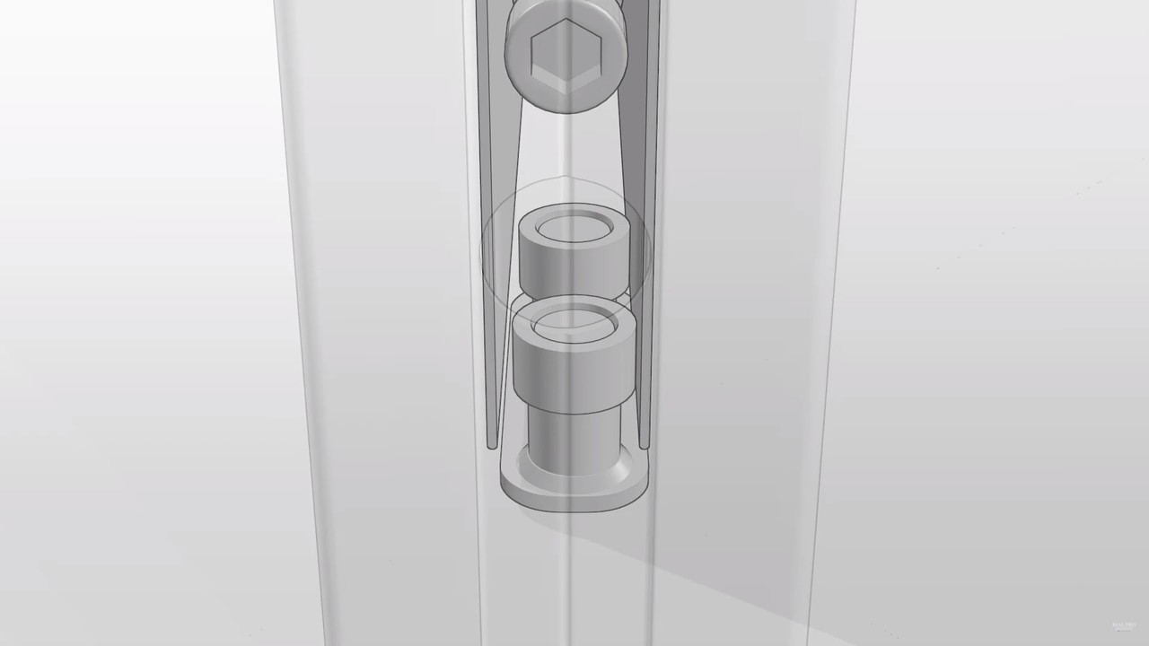 PU04 крепится к полу при помощи саморезов 3,5х15 так, чтобы его месторасположение находилось четко под верхней направляющей. Чтобы определить, правильно размещена эта деталь или нет, перемещаем перегородку из открытого положения в закрытое. Когда элемент занял нужное место, закрепляем его саморезами, монтируя перегородку в его плоскость.