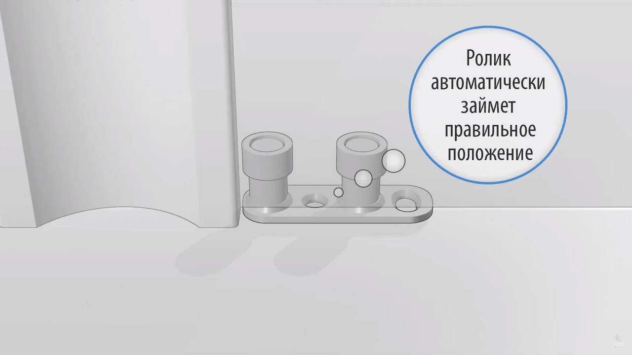 Вращая втулку регулировки перегородки по высоте, осуществляем отладку. Крепим ролик к кронштейну гайкой фиксации так, чтобы удерживалась втулка перегородки по высоте.