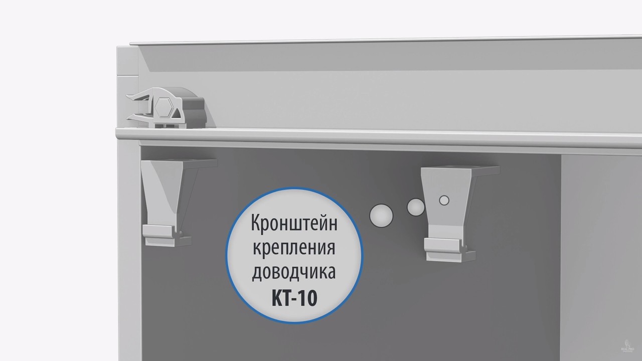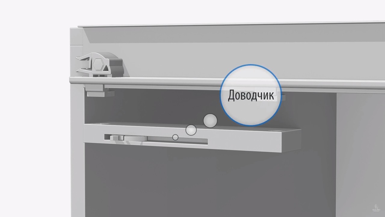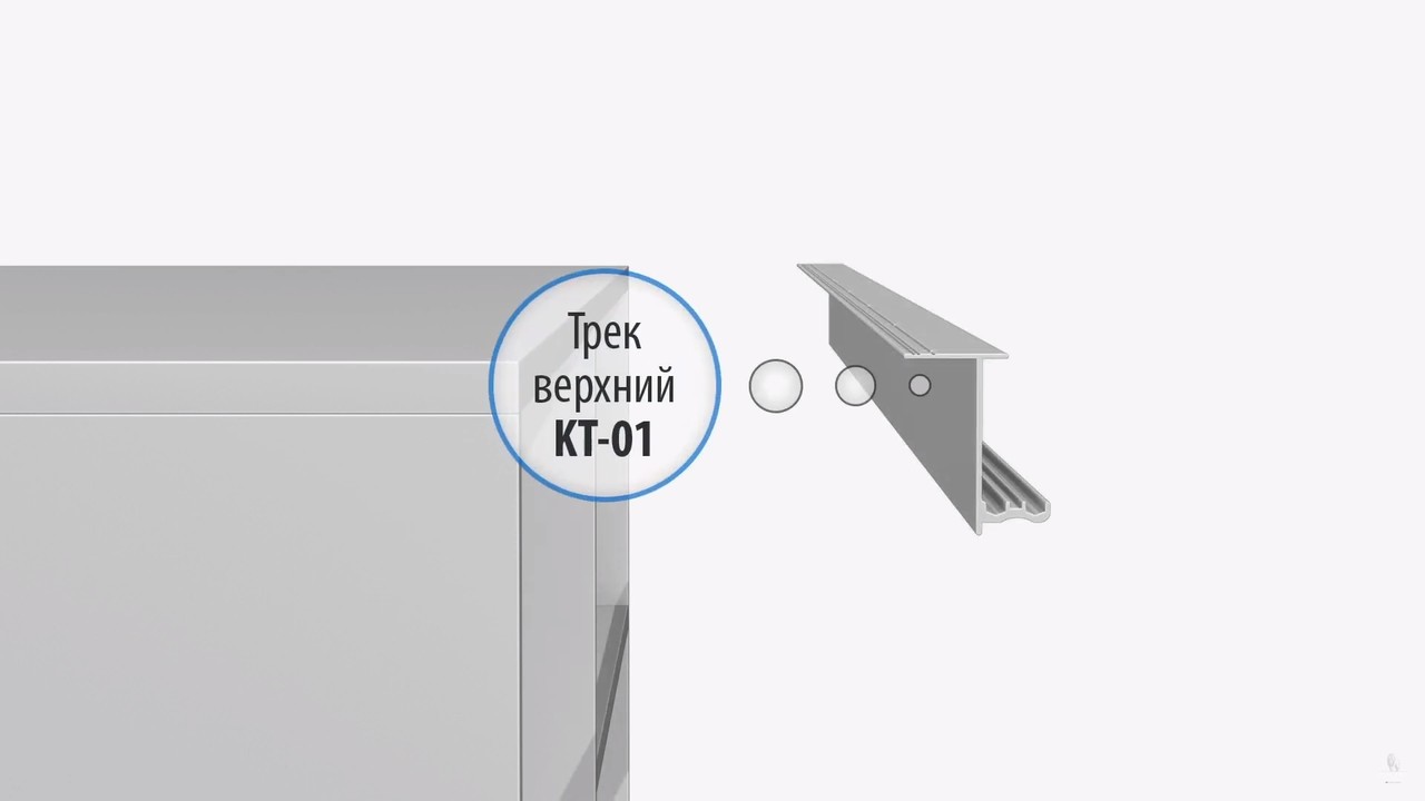 Сборка внутренней двери аналогична внешней. После крепления ручки задней двери, верхнего ролика, кронштейна привода доводчика и нижнего ролика внутренней двери переходят к установке направляющих профилей. Верхний трек фиксируют вверху, нижний - внизу шкафа, используя саморезы.