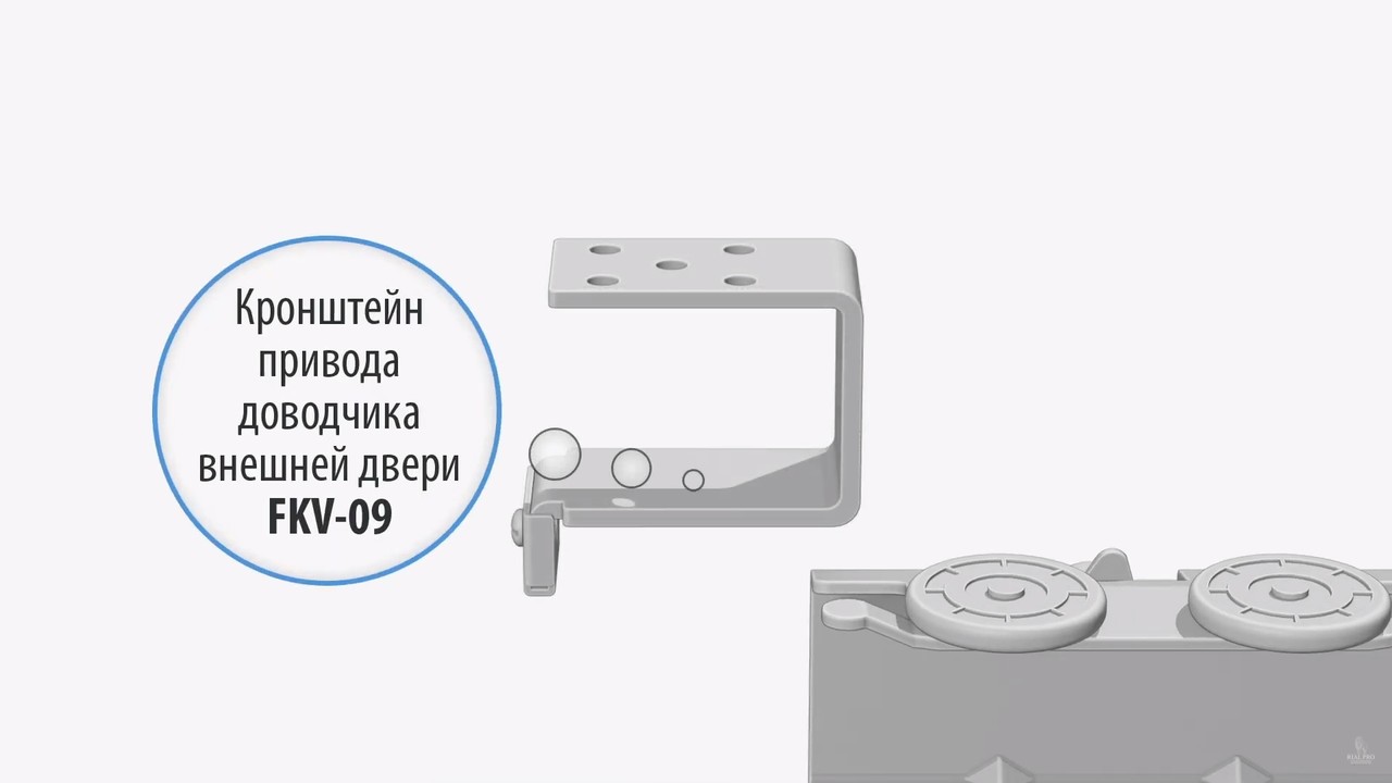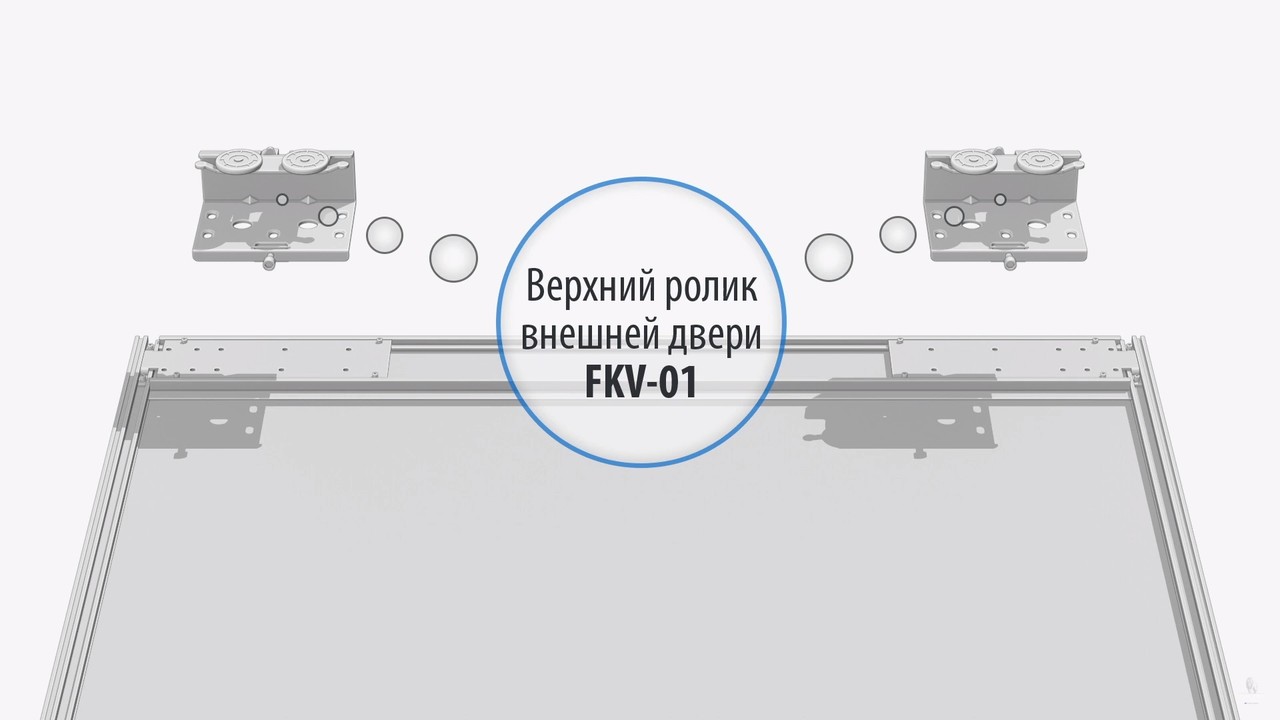Верхний ролик внешней двери с помощью фиксирующих винтов крепят поверх профилей. Кронштейн привода доводчика внешней двери соединяется с пластиной для крепления кронштейна привода доводчика. В месте установки пластины ставят короткую муфту, завинчивают. Нижние ролики внешней двери привинчивают к конструкции с противоположной стороны.