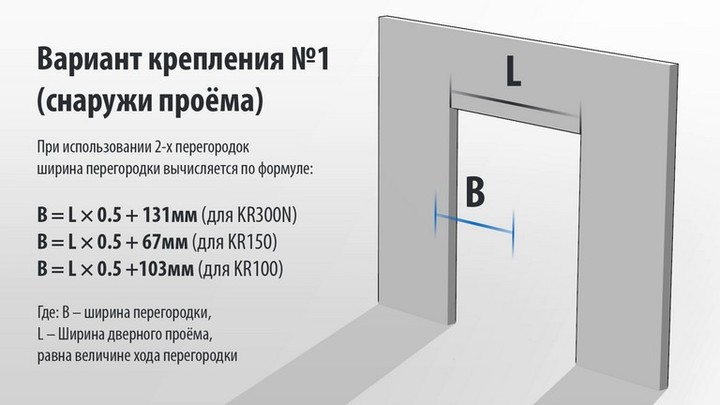 В зависимости от проема в стене можно легко вычислить ширину перегородки. Для этого используем формулу: